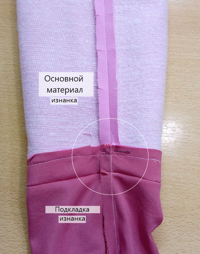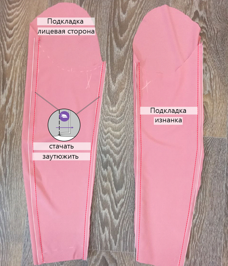 Стачайте детали подкладки рукавов между собой. Припуски швов заутюжьте в сторону верхней части рукава.