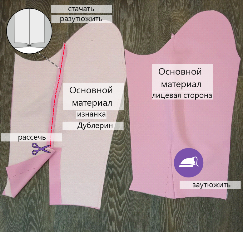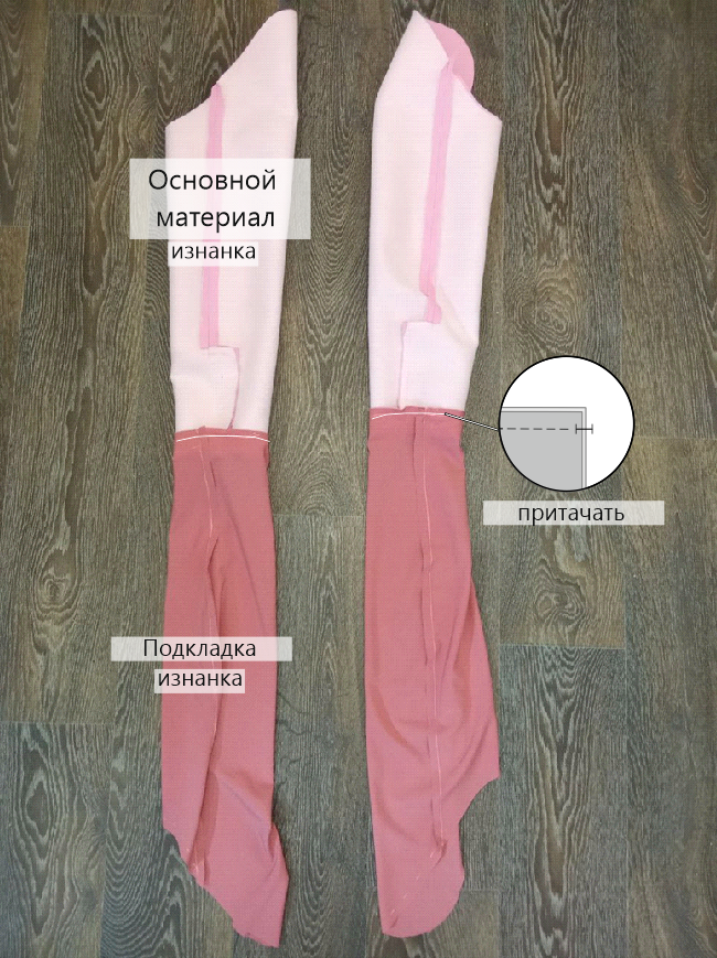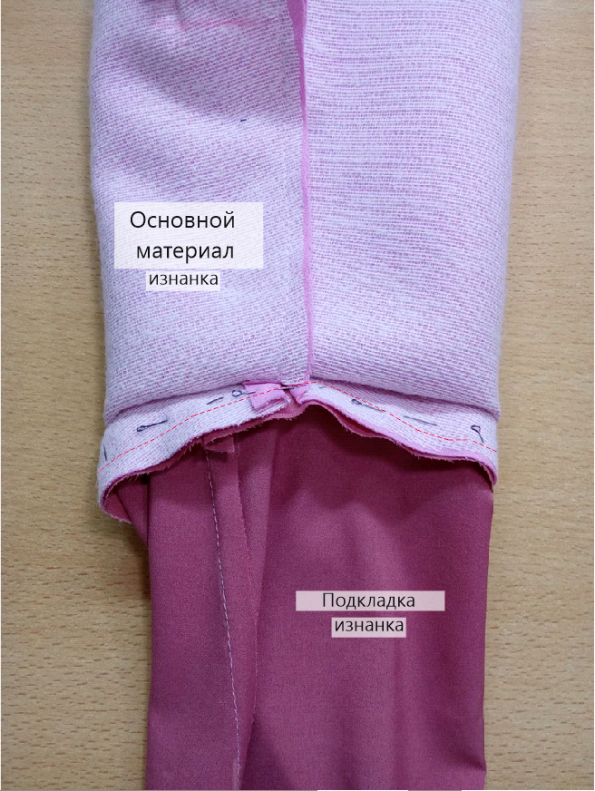 Выверните рукава подкладкой наружу. Приутюжьте складку по низу подкладки рукава.