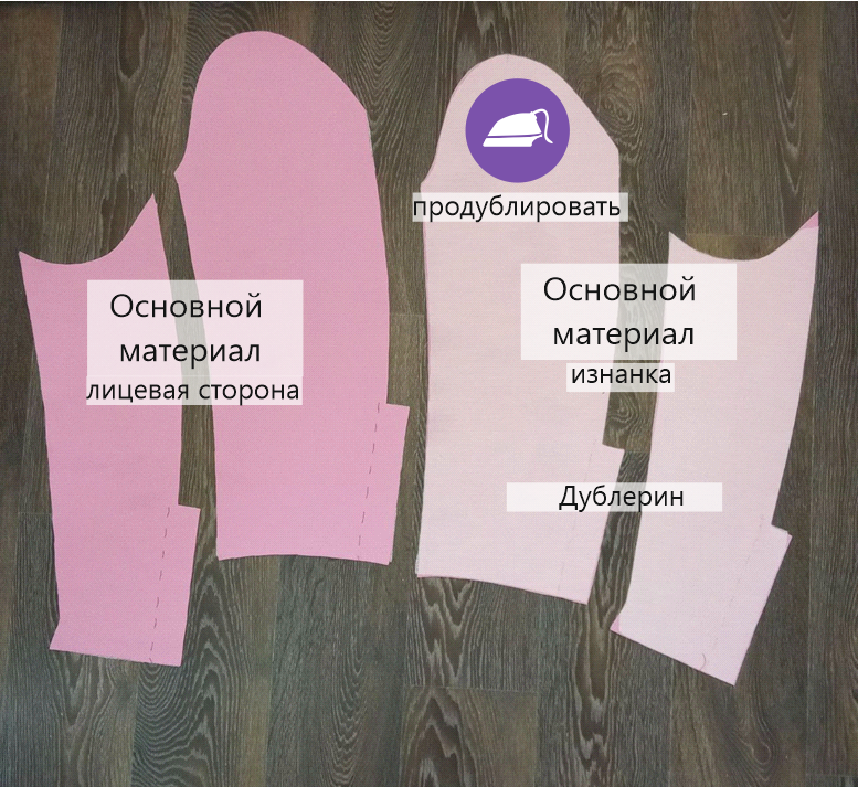 Выкроите детали рукавов. Продублируйте их с изнаночной стороны. Контрастными нитками проставьте контрольные линии по низу рукавов.
