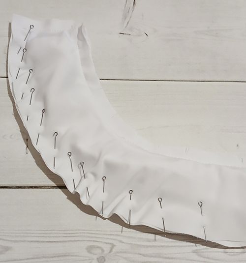 Сформируйте слабину из верхнего воротника в области горловины спинки, заколите булавками насквозь.