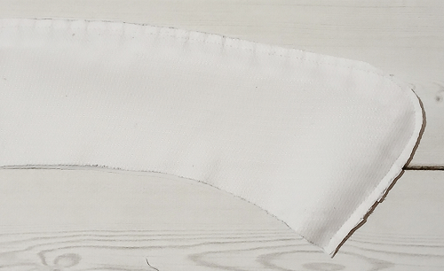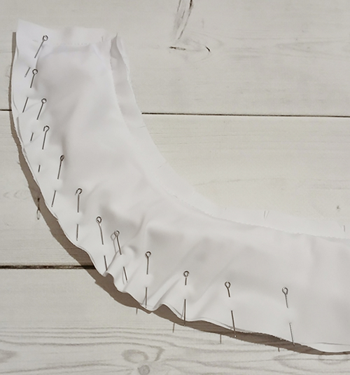 Стачайте воротники между собой на ширину припуска. Припуски шва на скруглениях срежьте до ширины 3 мм.