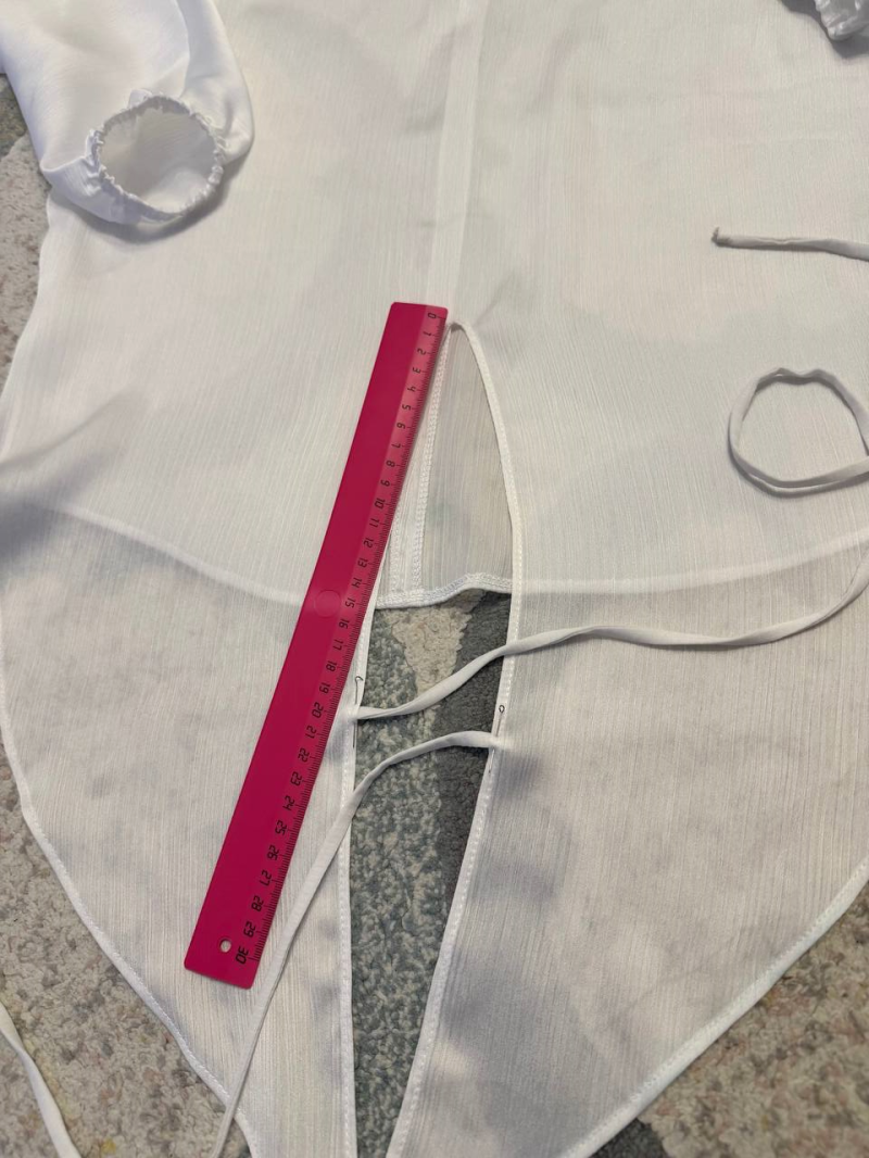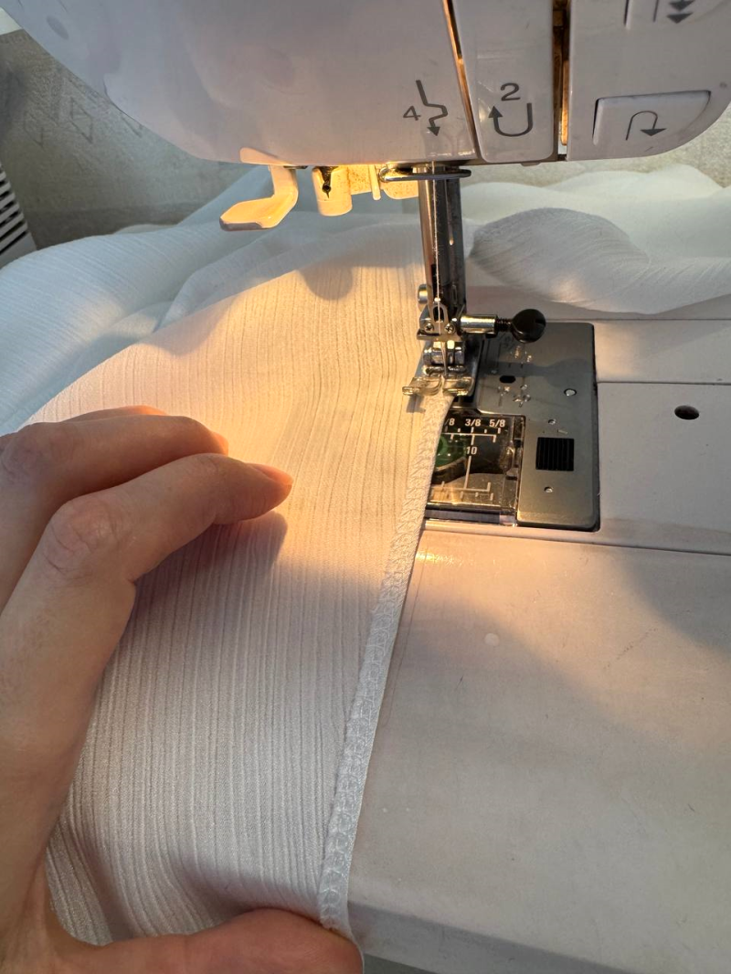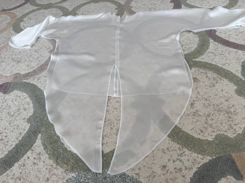 Обрабатываем разрезы по боковым швам блузки по спинке.