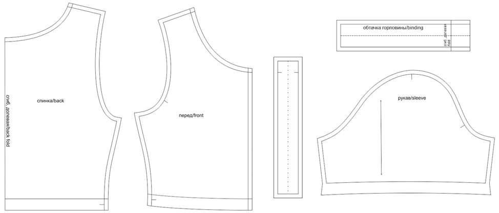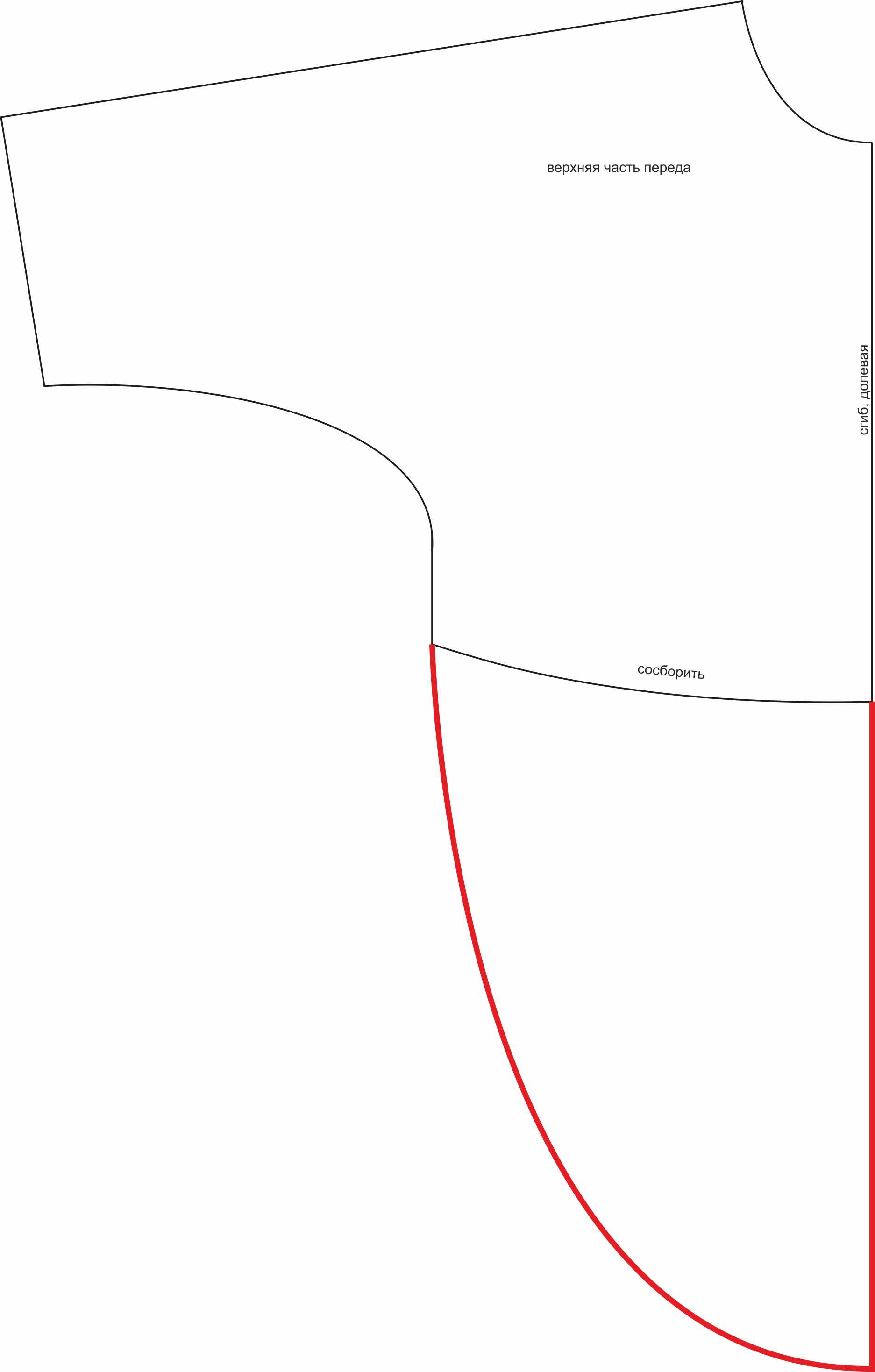- верхняя часть переда - 1 дет. со сгибом;