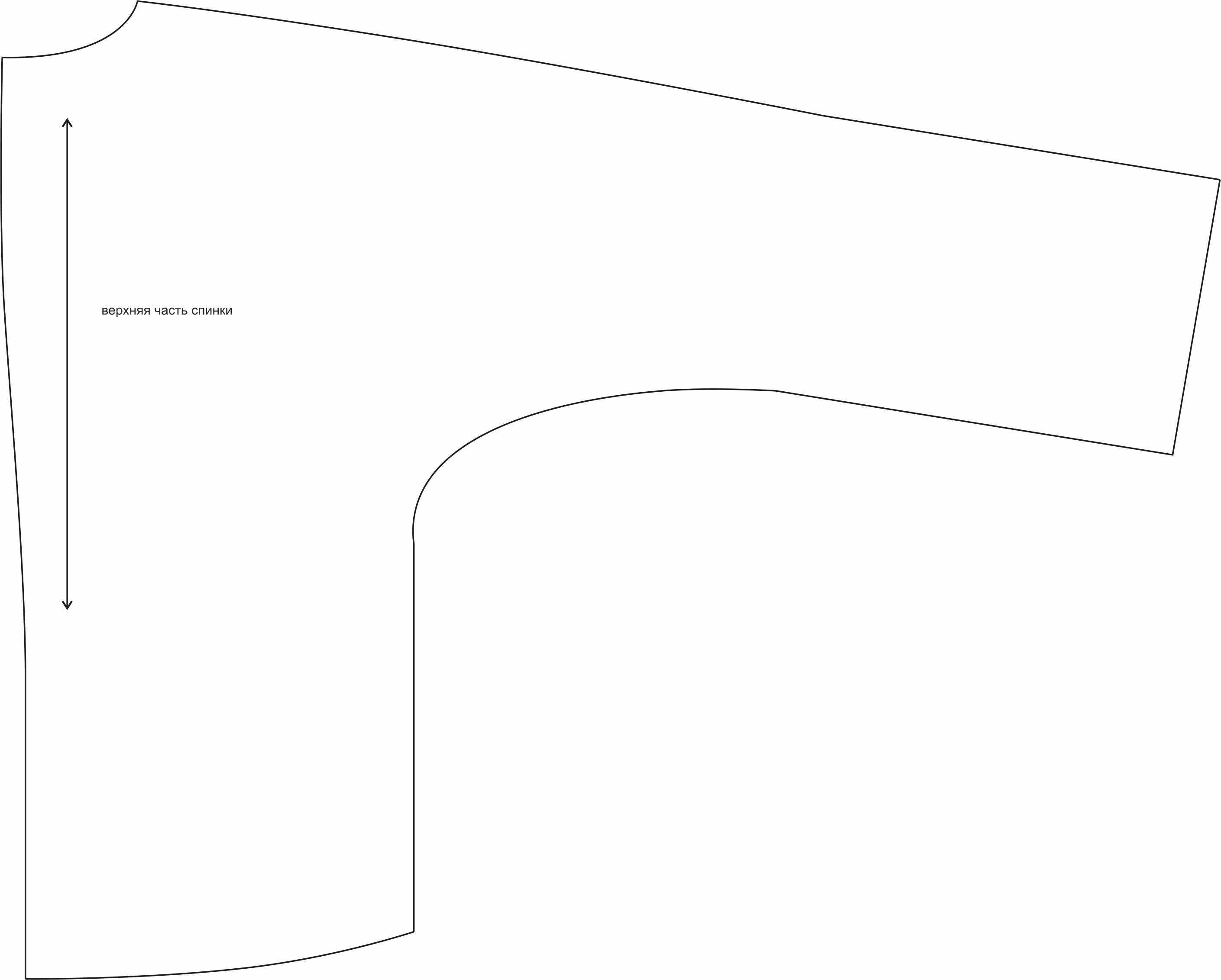 И проводим закругленную линию от новой отметки талии до отметки низа полочки.