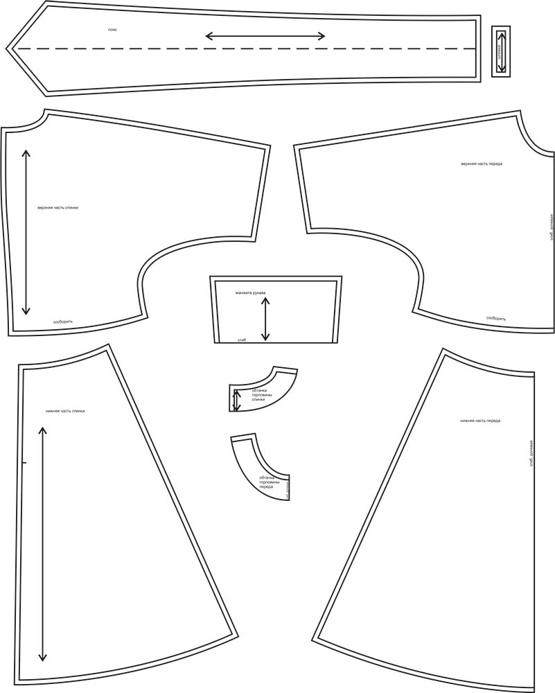 - манжета рукава - 2 дет. со сгибом (по желанию).