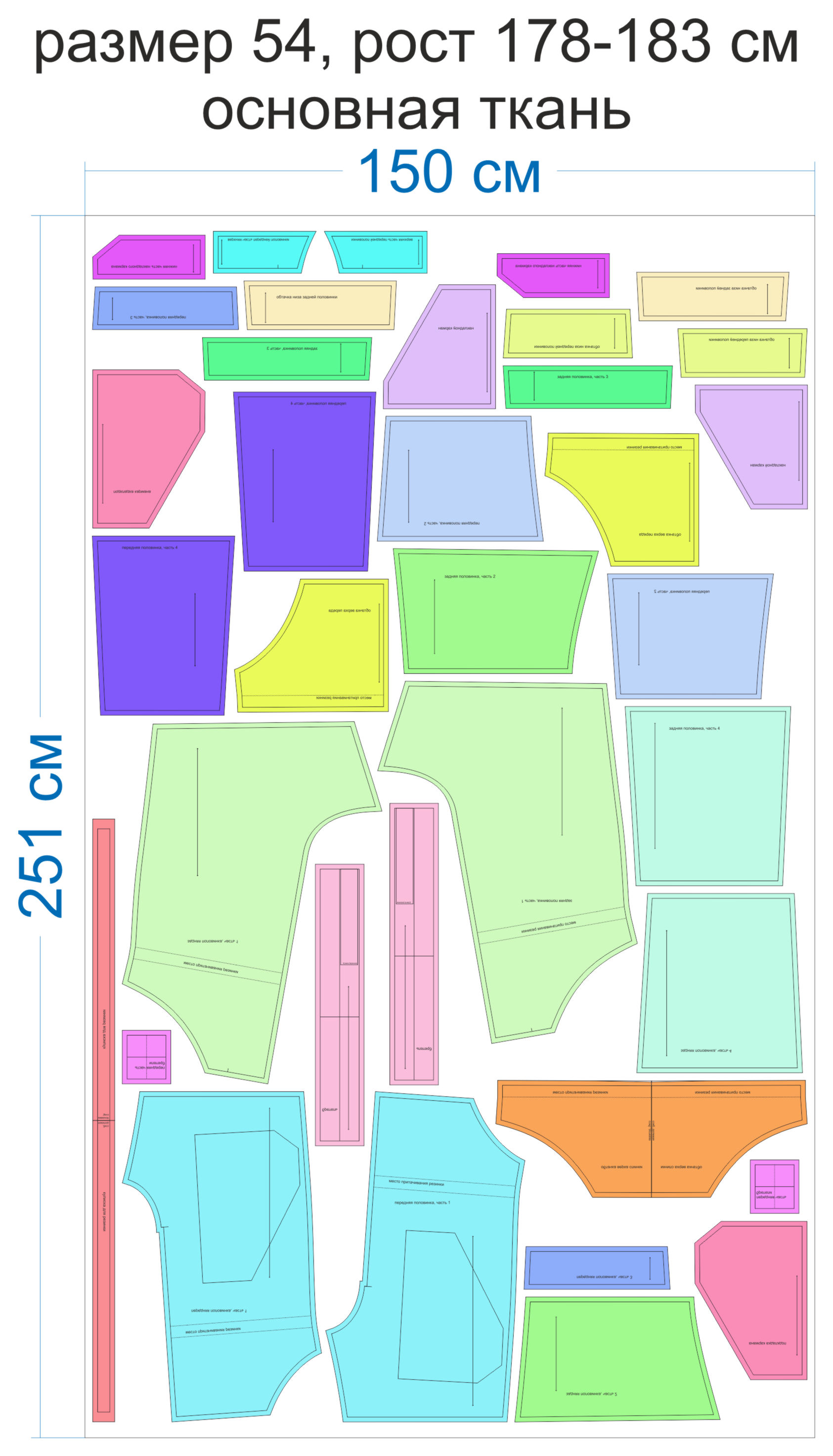 Образец раскладки на ткани (расчет выполнен для однотонной ткани одного цвета без учета направления ворса):