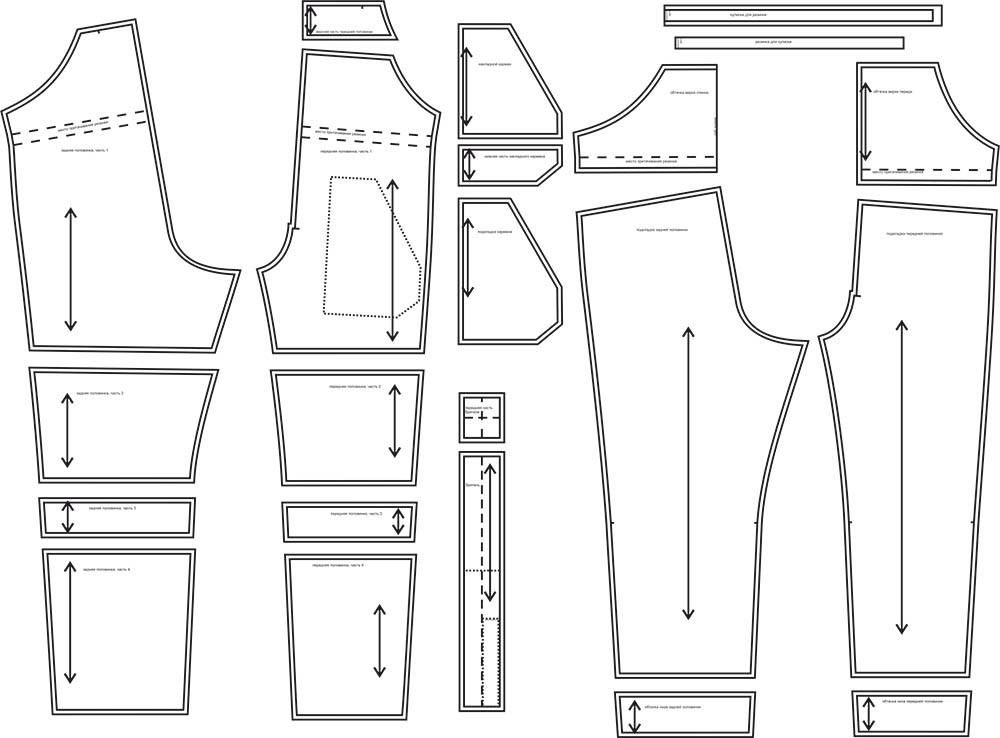 Выкройки даны с припусками на швы. Они обозначены двойным контуром.