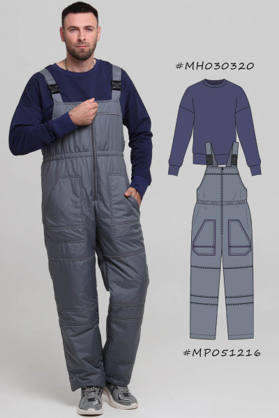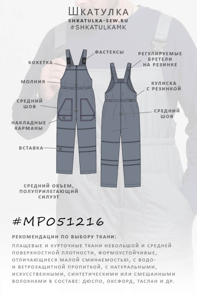 Выкройка мужского утеплённого полукомбинезона среднего объёма, полуприлегающего силуэта, выполненного на подкладке и утеплителе.