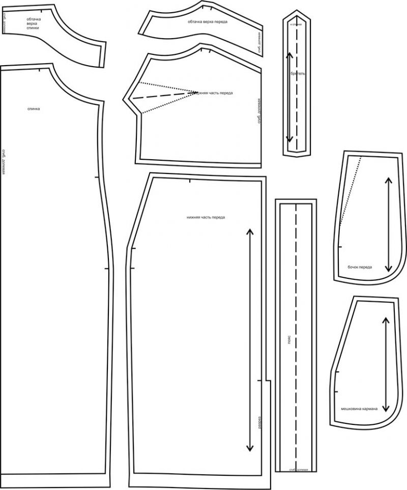 Выкройки даны с припусками на швы. Они обозначены двойным контуром.