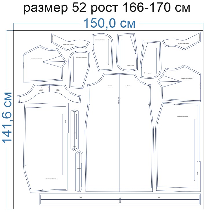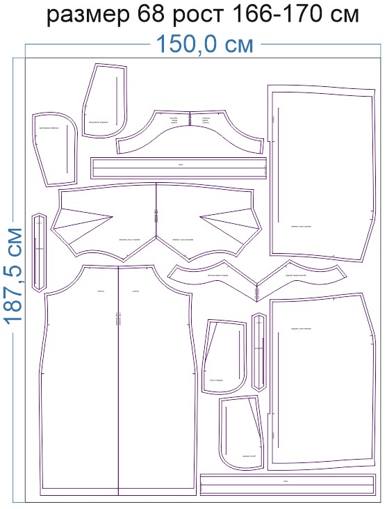 Внимание: расчет выполнен для однотонной ткани без рисунка, без учета направления ворса и возможной усадки! Усадка может достигать 15-20% от длины материала. Обязательно учитывайте это и берите с запасом.
