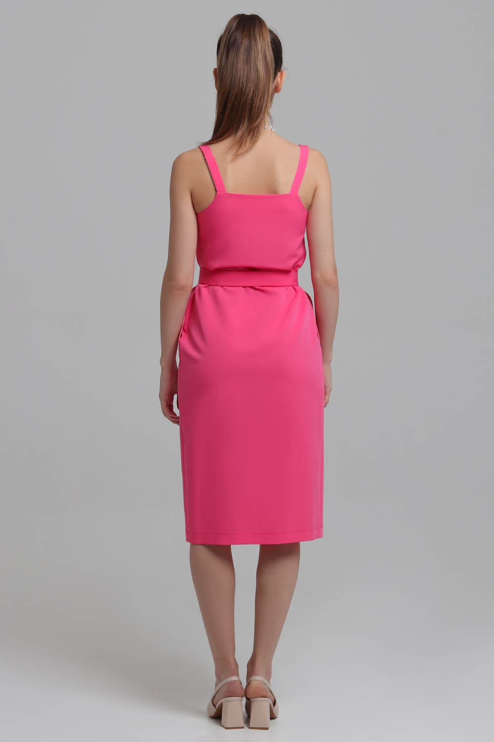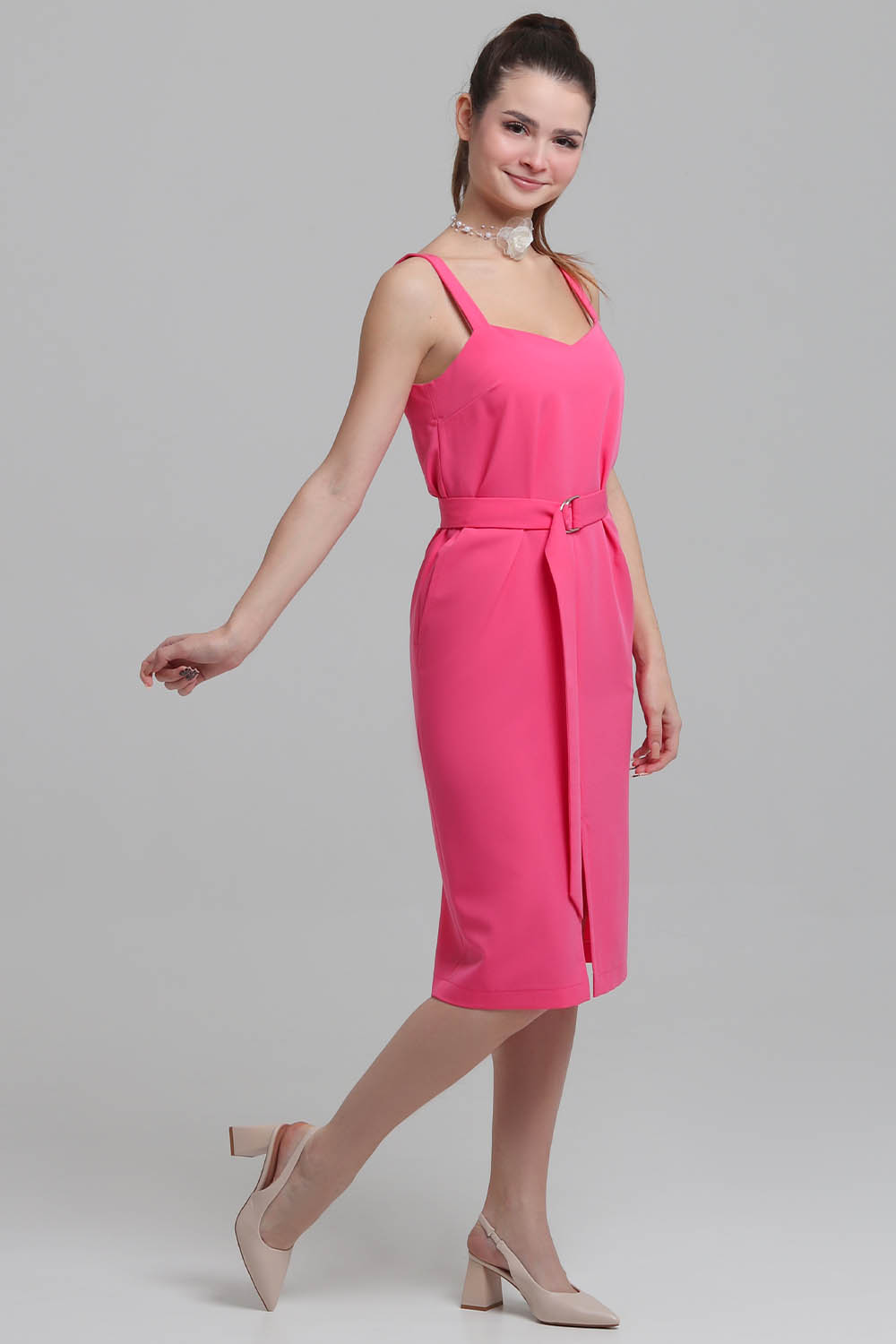 Этот сарафан, с акцентированной поясом линией талии, позволит выглядеть стильно в любой ситуации. Использование тканей с добавлением эластана превращает такой сарафан в облегченный вариант платья-футляр. Шлица добавляет комфорт, делая походку более легкой и грациозной. Оголенные плечи подчеркивают изящество шеи. Прохладным вечером или в более формальной обстановке их можно прикрыть жакетом, блузой или тонкой водолазкой. Такая модель отлично комплектуется и с балетками, и с обувью на высоком каблуке.