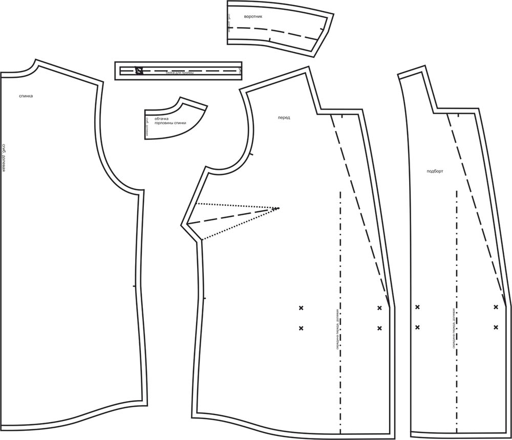 Выкройки даны с припусками на швы. Они обозначены двойным контуром.