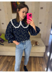 Такая блузка подойдет самым ярким и неординарным модницам-бунтаркам. Наряду со строгим классическим воротником, накладными карманами и самой обычной планкой в ней есть и приспущенное плечо, и пышный объемный рукав, и оформленный кружевом манжет. Фьюжн классики и романтики позволяет использовать такую блузу и на самых официальных школьных торжествах, и на неформальных мероприятиях. Она уместна и в тандеме с форменным школьным сарафаном или жилетом, и с джинсами или свободными объемными шортами. Индивидуальность и характер юной леди будет обозначен в любой ситуации.