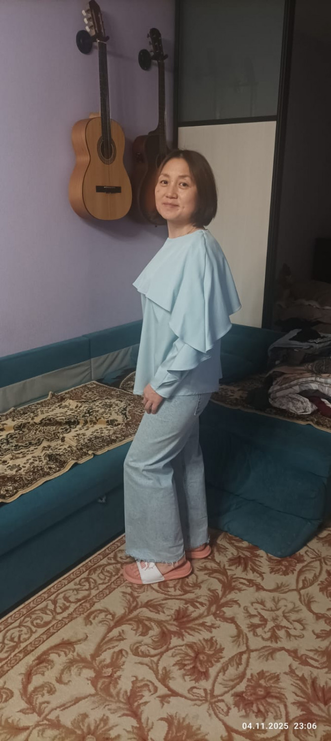 10Параметры модели: рост 170 см, обхват груди 87 см, обхват талии 67 см, обхват бедер 91 см. Выбрана выкройка 44 размера, рост 166-170 см. Корректировки не выполнялись.