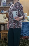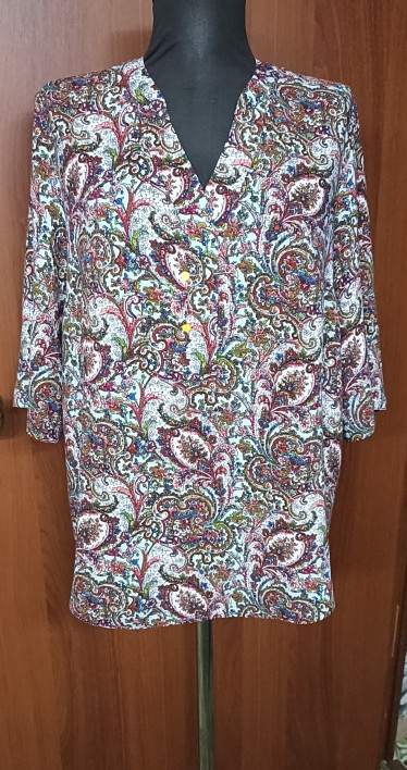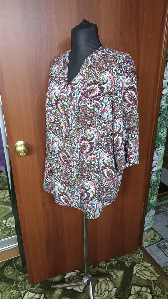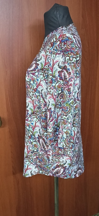 Форма низа переда и спинки блузки - фигурная. Длина изделия - чуть ниже линии бёдер.
