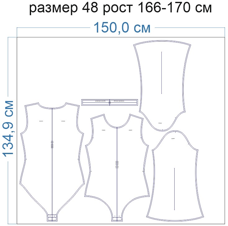 Образцы раскладки на трикотаже для выборочных размеров (расчет выполнен для однотонного трикотажа без учета направления ворса):