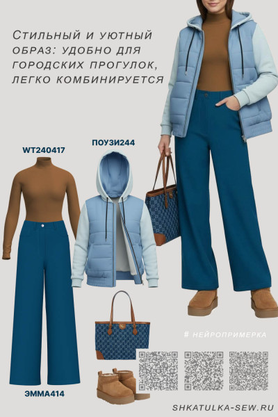 10Параметры модели: рост 170 см, обхват груди 84 см, обхват талии 63 см, обхват бедер 91 см. Выбрана выкройка 42 размера, рост 166-170 см. Корректировки не выполнялись.