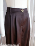 4Выкройка брюк "палаццо" для девочки. Пояс находится на естественном уровне талии. Спереди расположены 4 складки-защипа и карманы с отрезным бочком. Сзади - 2 талиевых вытачки. Застежка гульфик и пуговицы/потайные крючки на поясе.