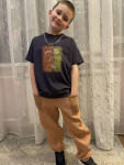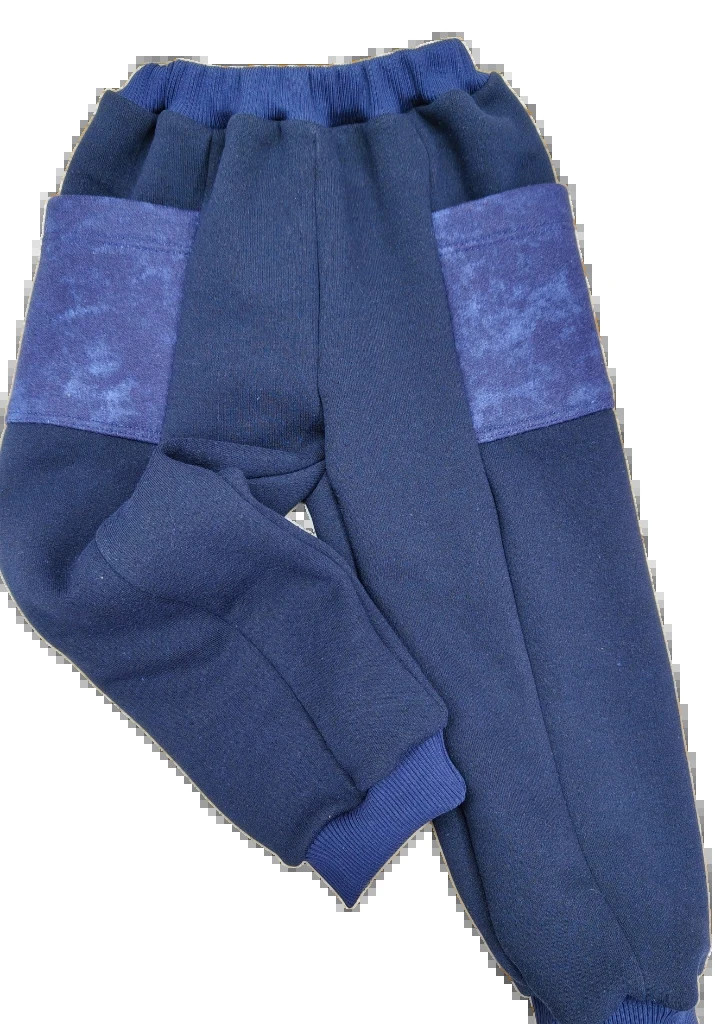 4Выкройка детских комбинированных брюк среднего объёма, прямого силуэта. Состоит из передней части, задней части и боковой части с расположенным на ней в области бедра накладным карманом.