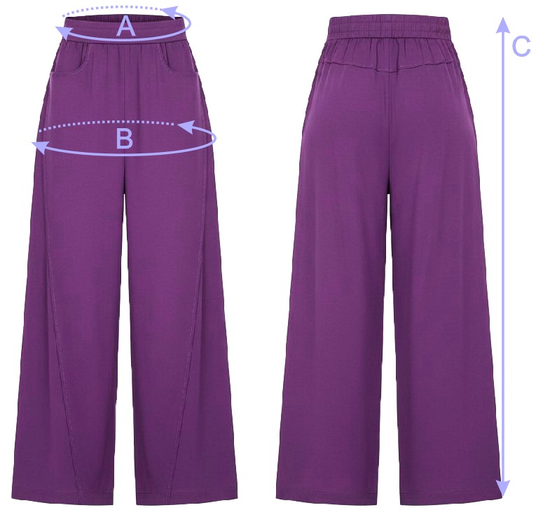 B - ширина на уровне бедер в полном обхвате