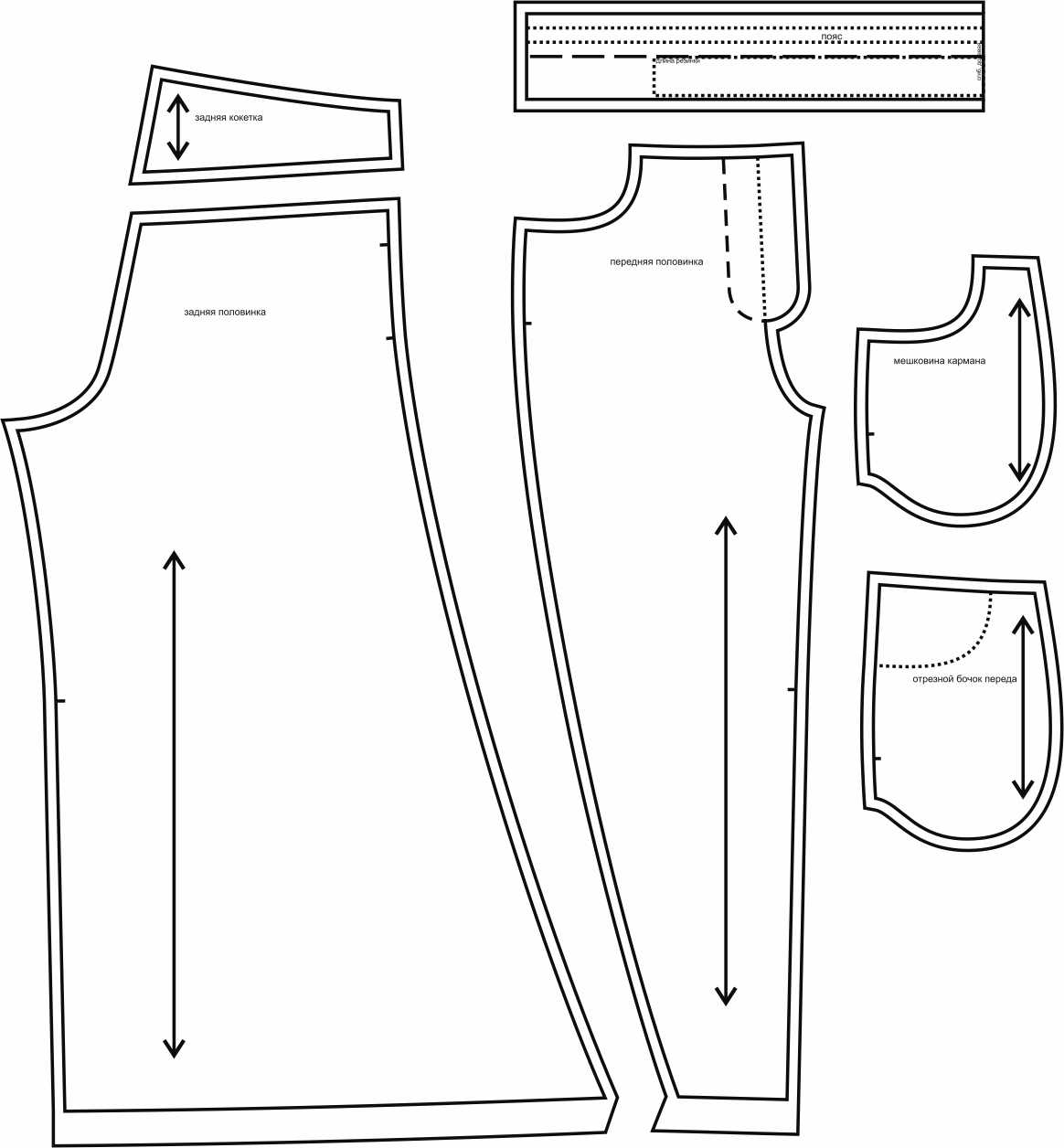 Выкройки даны с припусками на швы. Они обозначены двойным контуром.