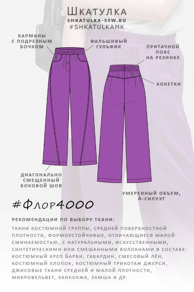 Выкройка брюк Флор4000