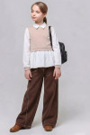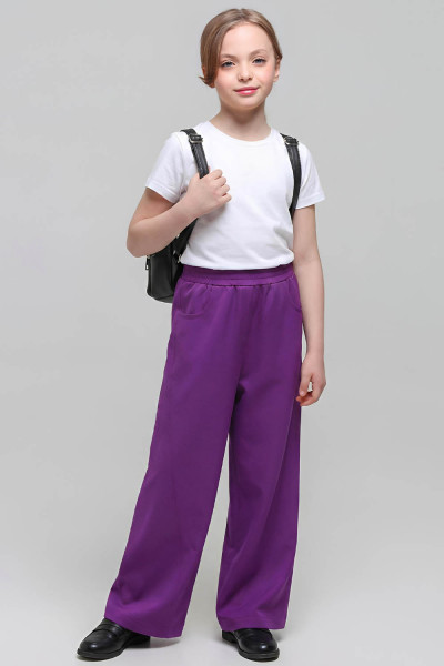 4Выкройка детских брюк палаццо умеренного объёма, А-силуэта. Перед - с боковыми карманами с подрезным бочком, со смещённым диагонально вниз боковым швом. Задние половинки - с кокетками.