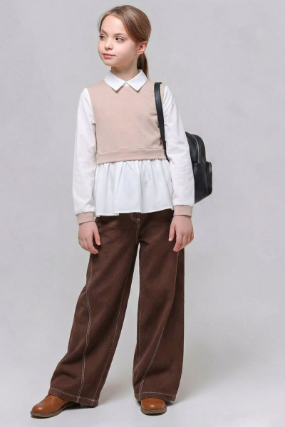 10Параметры модели: рост 140 см, обхват груди 64 см , обхват талии 63 см, обхват бедер 71 см. Выбрана выкройка 140 размера. Корректировки не выполнялись.