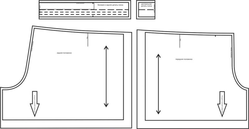 Длина брюк - до щиколотки (лекала необходимо удлинить по разметке).