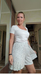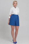 4Выкройка запахивющихся женских шорт / брюк среднего объёма, прямого силуэта, без бокового шва. Передние половинки - цельные, увеличенные по ширине в области боковых швов для образования перехода на задние половинки. Задние половинки цельные, увеличенные по ширине в области боковых швов для образования перехода на передние половинки. Линия талии в изделии находится на естественном месте. Верхний срез обработан притачным поясом на резинке, со вставкой без резинки, расположенной по центру переда.