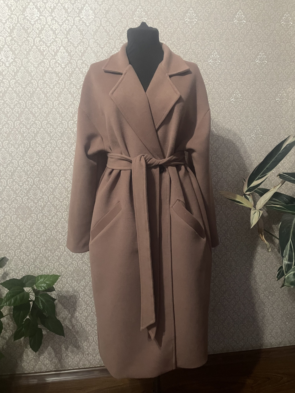 Такое запашное пальто, несущее в себе японские мотивы, сочетает и практичность, и элегантность. V – образный вырез удлиняет силуэт, пояс фиксирует и подчеркивает талию. Легкая и удобная модель пальто-халата незаменима для торжественных мероприятий, когда можно отказаться от пояса и накинуть его на вечернее платье. Отсутствие пуговиц и приспущенное плечо приближают такое пальто к стилю оверсайз, когда разница в 1-2 размера не столь ощутима. Это может оказаться дополнительным бонусом для беременных женщин.