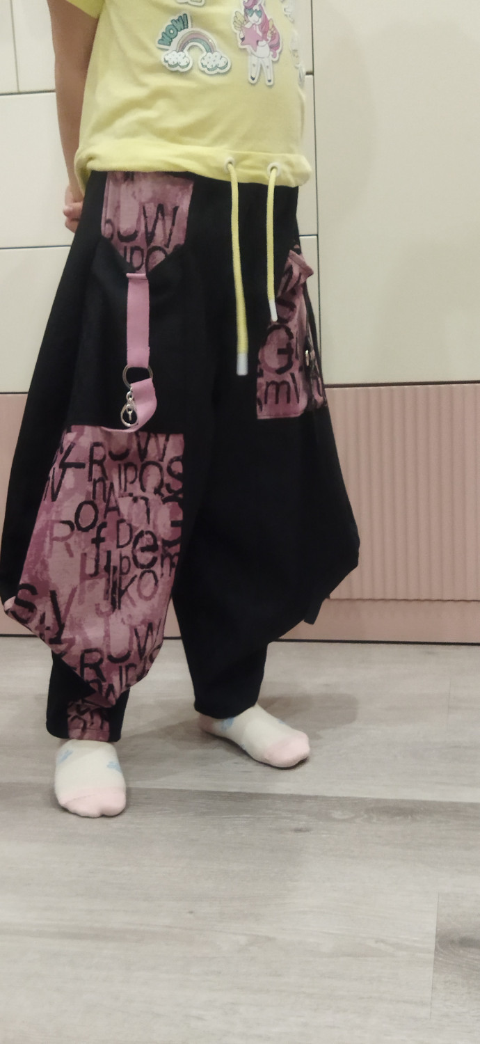 Если у вас подрастает стильная и неординарная личность, которой не чужды эксперименты во всем, то эти креативные брюки с заниженной слонкой ей непременно понравятся. Полуспортивный стиль с нотками элегантной расслабленности – неизменные атрибуты приверженцев «уличной моды» нового поколения. Необычный крой, варьирование цветами, принтами и фактурами  - все это позволяет максимально выделиться, подчеркнуть собственную индивидуальность. При этом появляется полная свобода движений и возможность приобщиться к яркой и очень выразительной молодежной субкультуре.