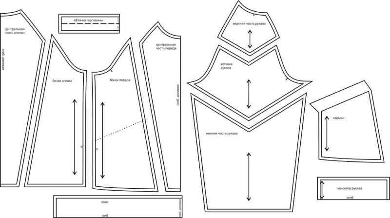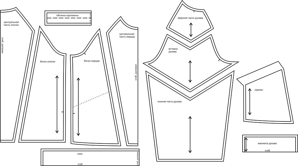 Выкройки даны с припусками на швы. Они обозначены двойным контуром.