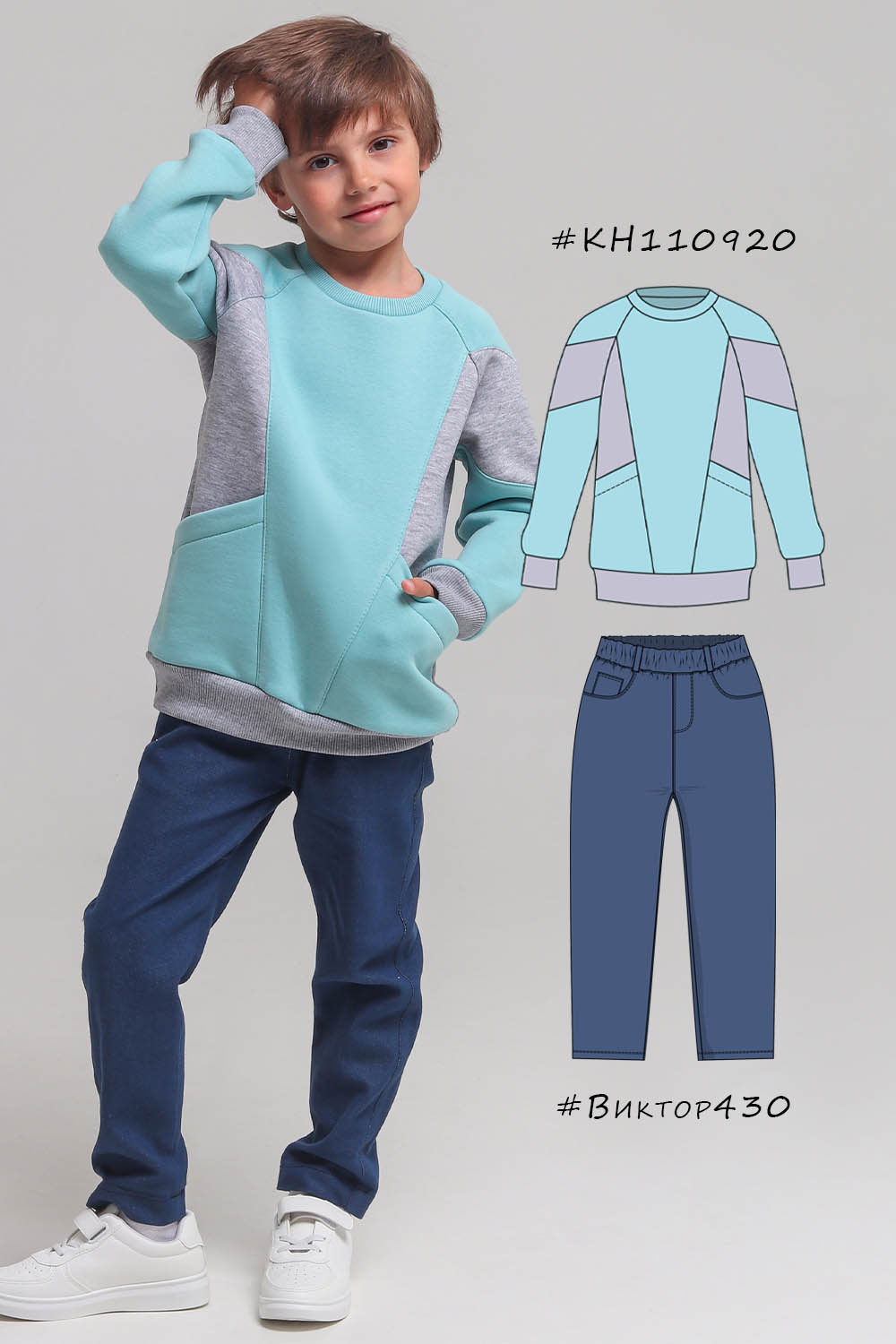 Выкройка детского свитшота со вставками KH110920