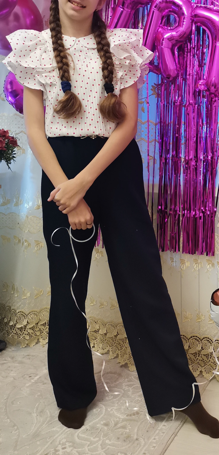10Параметры модели: рост 129 см, обхват груди 61 см, обхват талии 57 см, обхват бедер 66 см. Выбрана выкройка 128 размера. Корректировки не выполнялись.