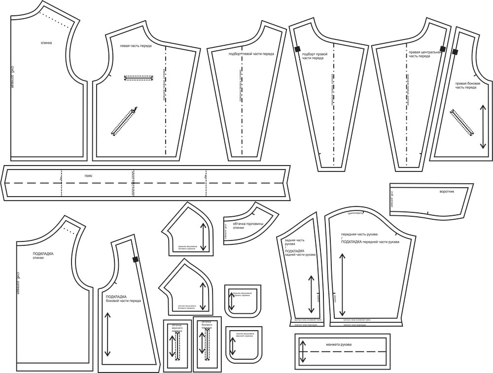 Выкройки даны с припусками на швы. Они обозначены двойным контуром.