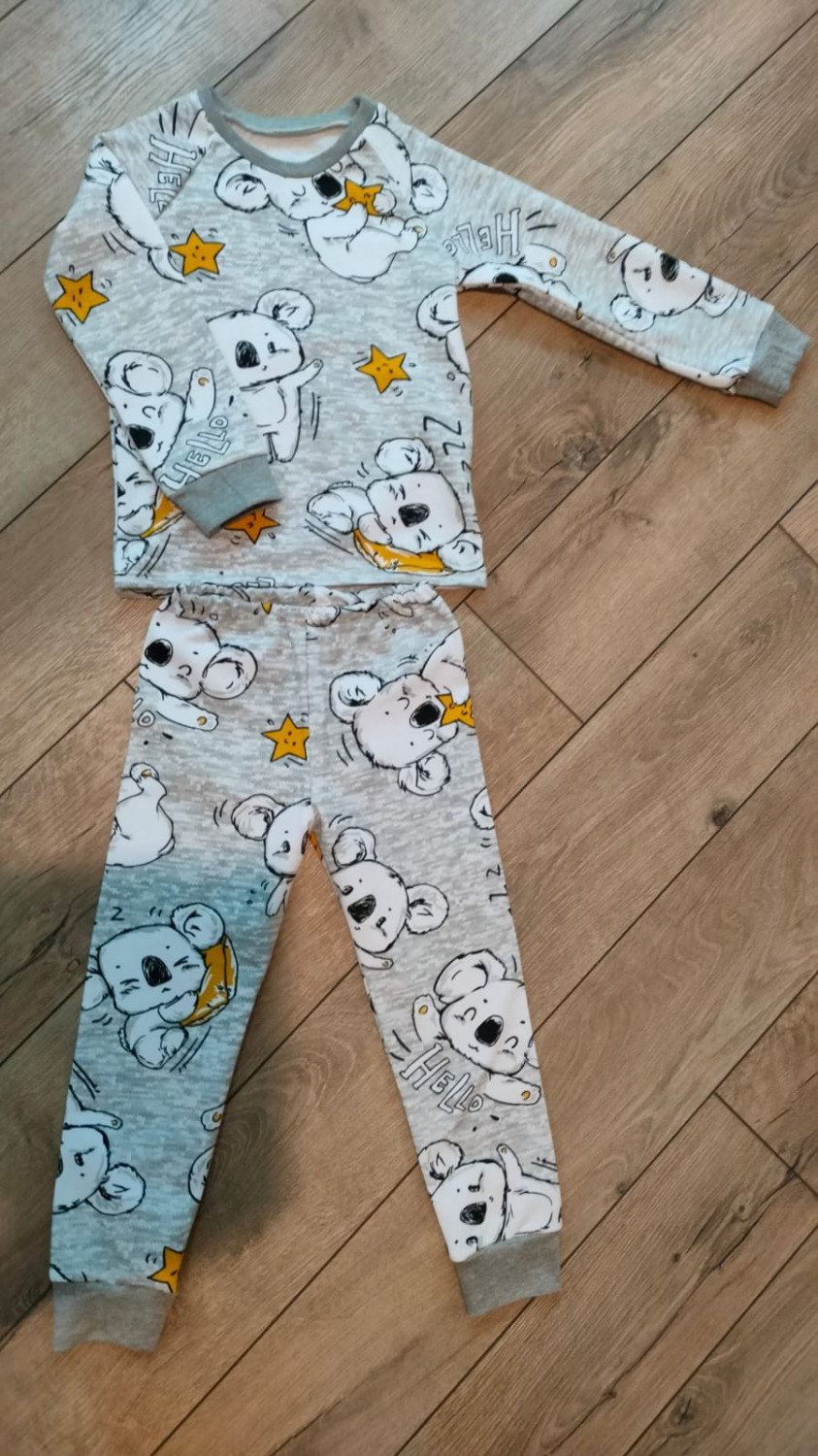 Для изготовления пижамы подойдут трикотажные полотна средней плотности, формоустойчивые, тактильно мягкие, с высокими гигиеническими и гигроскопическими свойствами, например, футер двухнитка петля, интерлок, плотный кулир, а также кашкорсе или рибана для манжет и пояса.