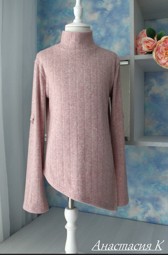 Для пошива водолазки подойдут формоустойчивые трикотажные полотна средней поверхностной плотности, тактильно мягкие, с высокими и средними гигиеническими и гигроскопическими свойствами, типа джерси лапша, тонкая лапша, футер с эластаном, кулир, интерлок, кашкорсе, рибана и др.