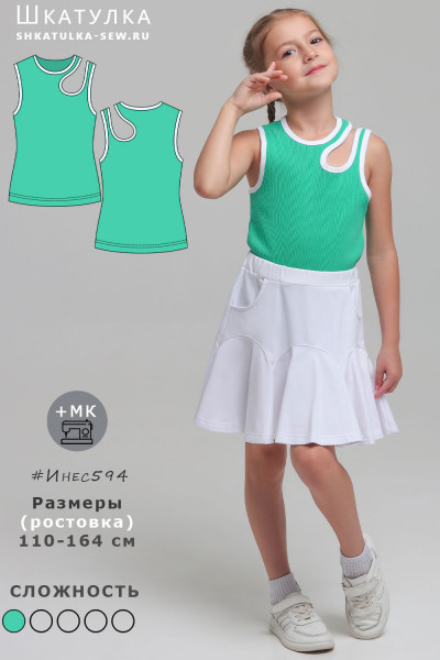 10Параметры модели: рост 122 см, обхват груди 61 см, обхват талии 58 см, обхват бедер 64 см. Выбрана выкройка 122 размера. Корректировки не выполнялись.