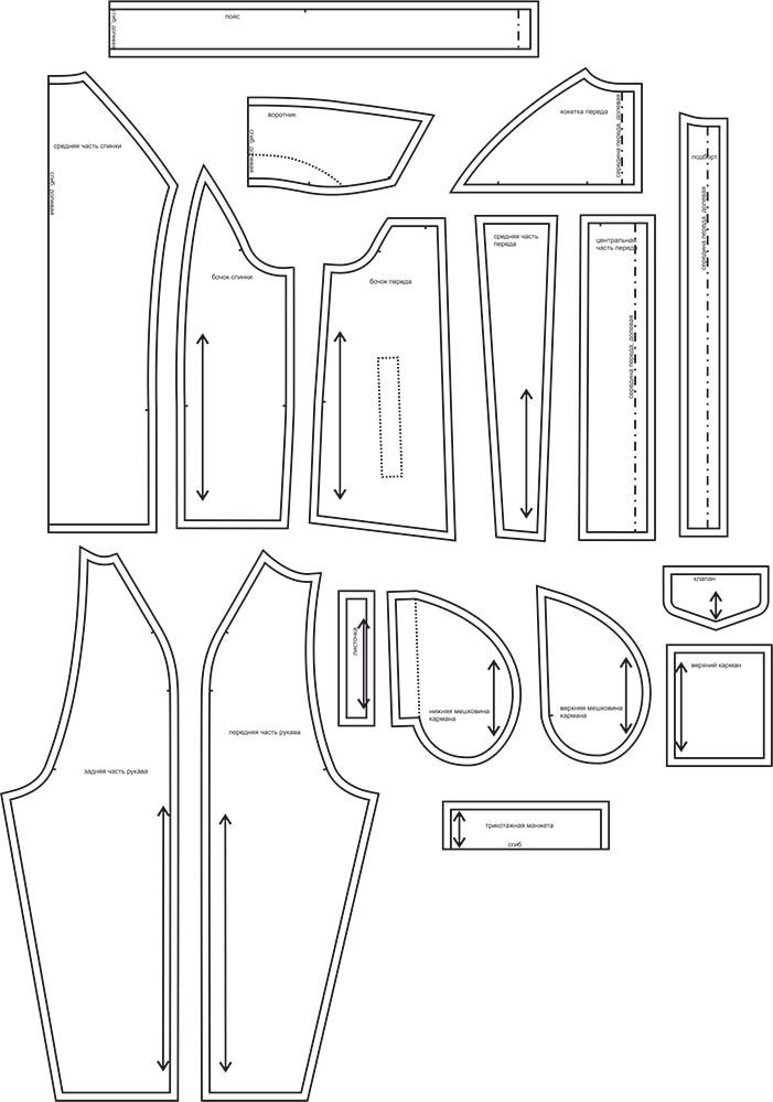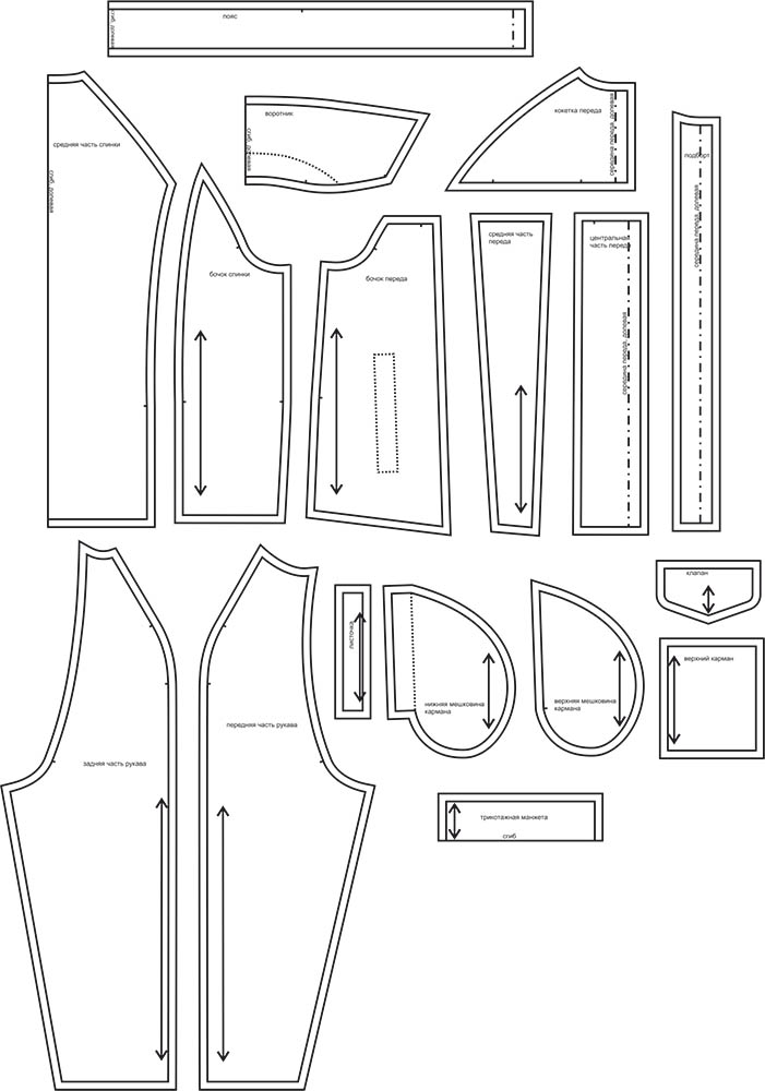 Выкройки даны с припусками на швы. Они обозначены двойным контуром.