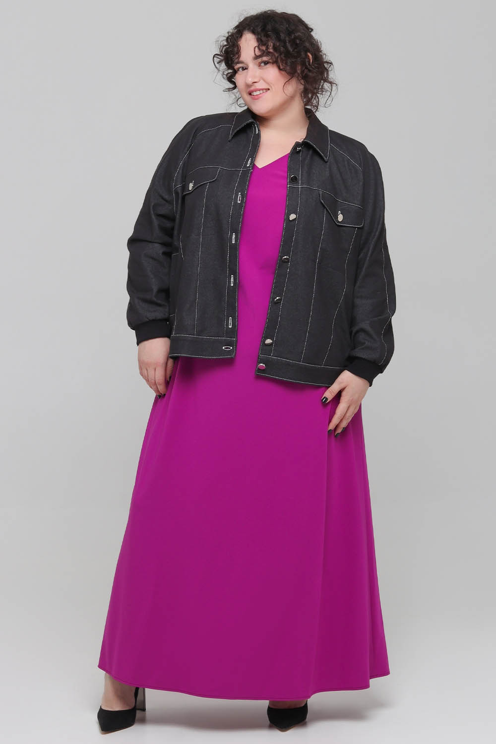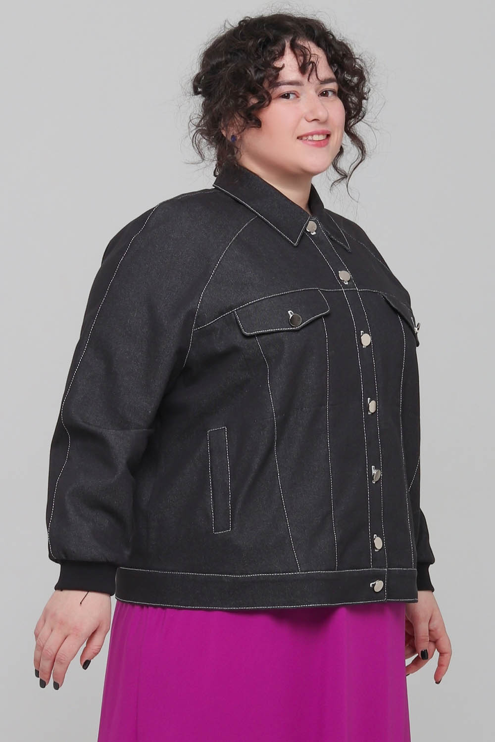 Длина джинсовки - до линии бёдер.