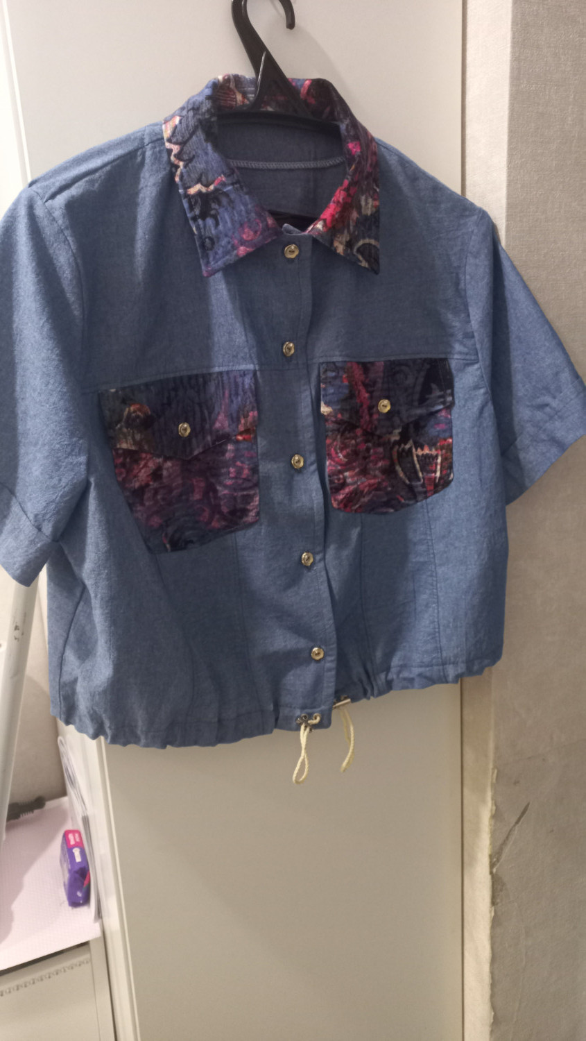 Спинка — с кокеткой и вертикальными рельефами. По низу джинсовки предусмотрен притачной пояс. Горловина изделия обработана отложным воротником. Застёжка — центральная, бортовая, на обмётанные петли и пуговицы. Рукава — рубашечные, двухшовные, длинные, со складкой и разрезом по низу локтевого шва, на притачной застёгивающейся манжете. Длина изделия — ниже линии бёдер.