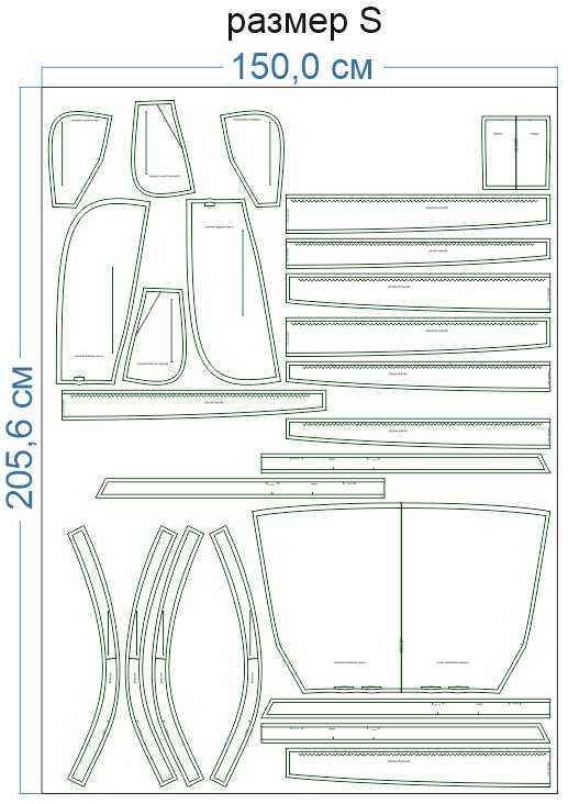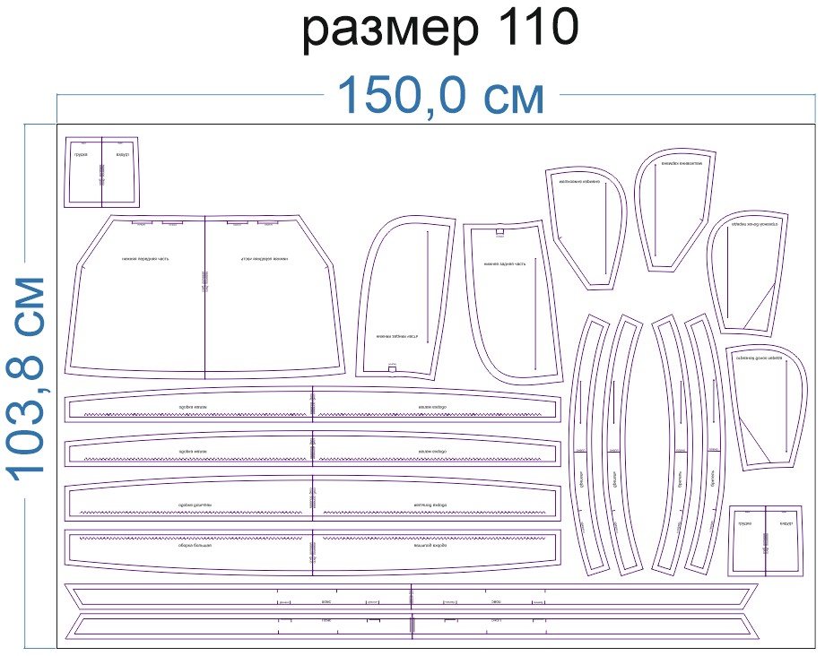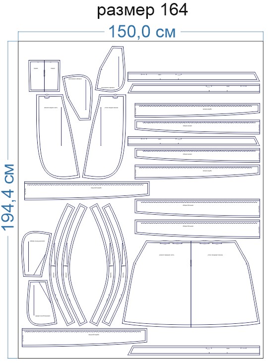 Образцы раскладки на ткани для выборочных размеров (расчет выполнен для однотонной ткани без учета направления ворса):