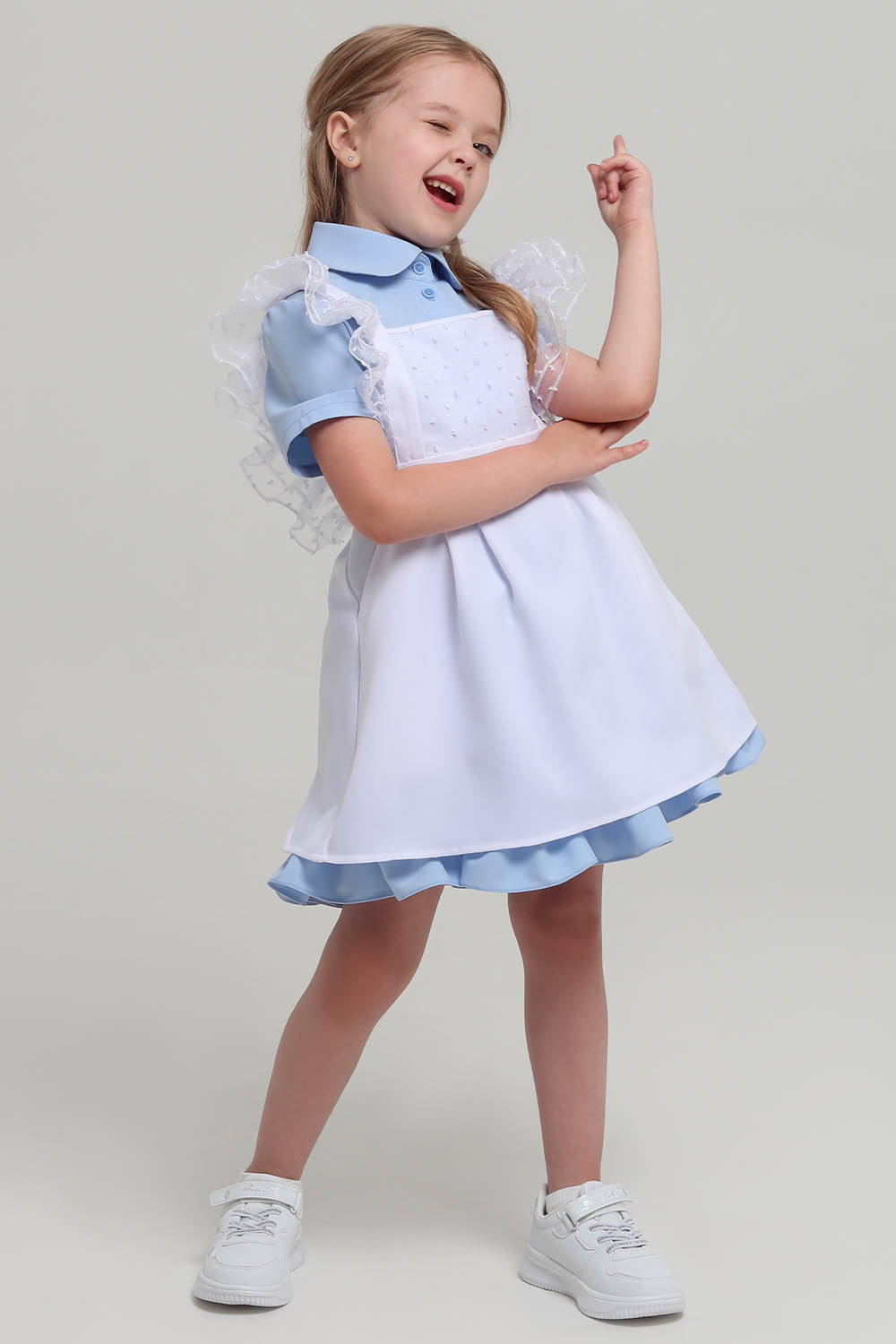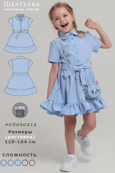 10Параметры модели: рост 114 см, обхват груди 57 см, обхват талии 55 см, обхват бедер 62 см. Выбрана выкройка 116 размера. Корректировки не выполнялись.