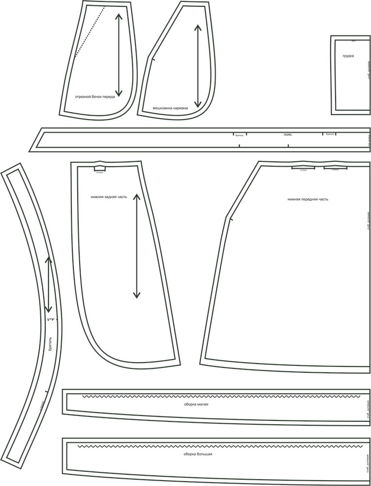 Выкройки даны с припусками на швы. Они обозначены двойным контуром.