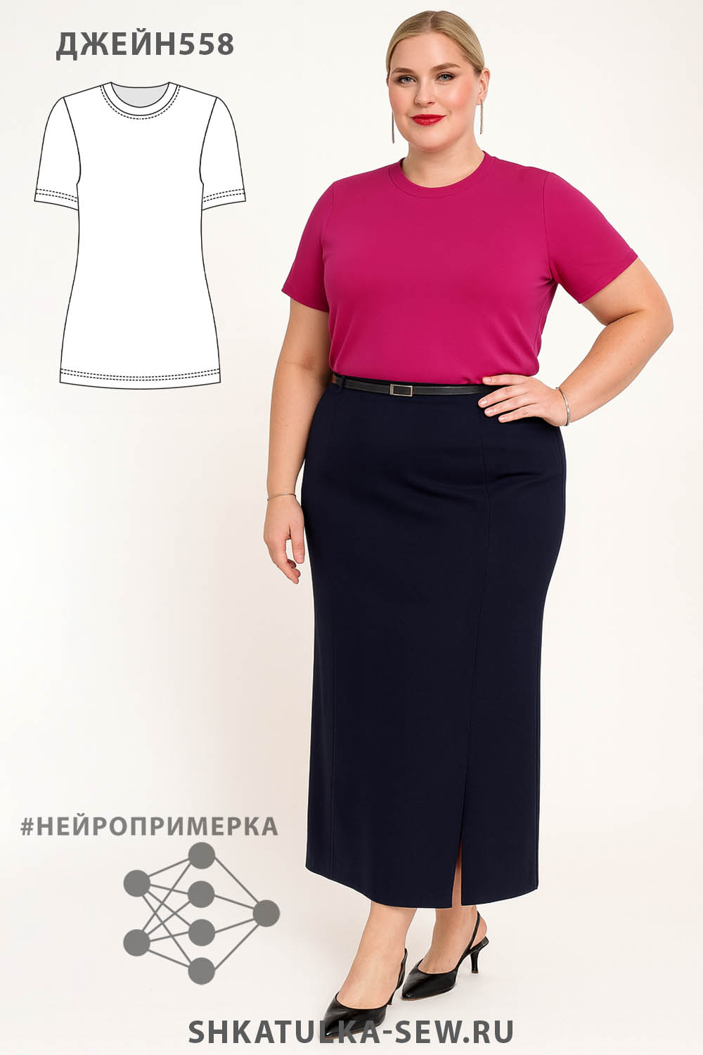10Параметры модели: рост 173 см, обхват груди 92,5 см, обхват талии 70 см, обхват бедер 104 см . Выбрана выкройка 48 размера, рост 171-175 см. Корректировки не выполнялись.