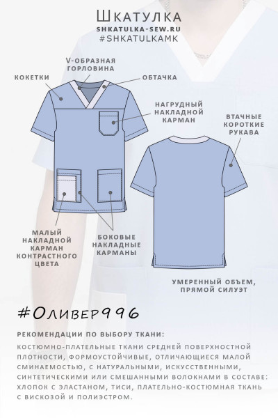 Выкройка хирургической рубашки Оливер996