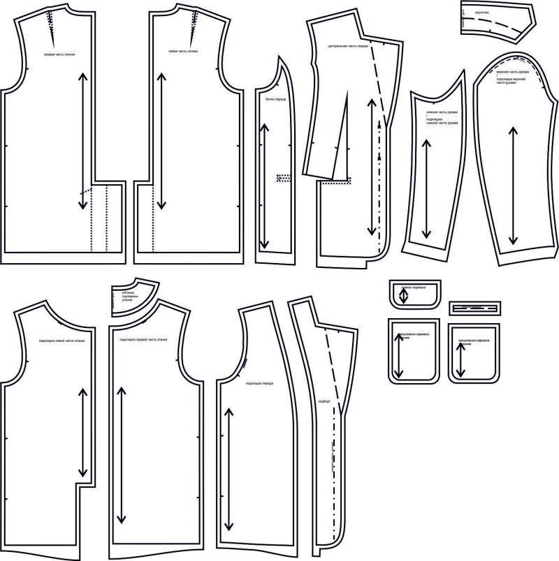 Выкройки даны с припусками на швы. Они обозначены двойным контуром.