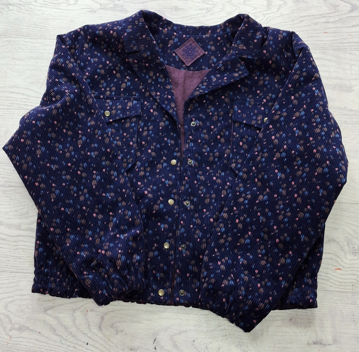 4Выкройка укороченного женского жакета среднего объёма, прямого силуэта, выполненного на подкладке. Перед — с нагрудными карманами с клапанами. Спинка — цельная, без особенностей. Горловина жакета оформлена отложным английским воротником с лацканами. Застёжка — центральная, бортовая, на кнопки. По низу жакета предусмотрена кулиска с резинкой. Рукава — рубашечного покроя, длинные, со сборкой на резинку по низу. Длина жакета — выше линии бёдер.