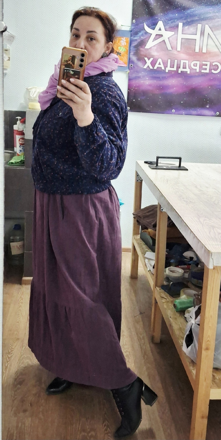 10Параметры модели: рост 173 см, обхват груди 92 см, обхват талии 72 см, обхват бедер 105 см. Выбрана выкройка 46 размера, рост 171-175 см. Корректировки не выполнялись.